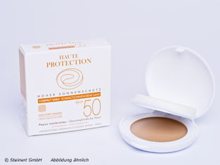 Vor jedem Aufenthalt in der Sonne ausreichend Sonnenschutz auftragen und regelmäßiges Nachcremen nicht vergessen. Kompaktsonnencreme SPF 50 mit dem Schwämmchen direkt auf die Tagespflege auftragen und von der Mitte nach außen hin im gesamten Gesicht verteilen.