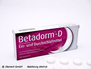 Die Betadorm D Tabletten werden zur kurzzeitigen Behandlung von Schlafstörungen angewendet. Die Tabletten enthalten den Wirkstoff Diphenhydramin. Bei diesem Wirkstoff handelt es sich um eine Substanz aus der Gruppe der Antihistaminika. Bei einem Überschuss des Botenstoffes Histamin im Gehirn kommt es unter anderem zu Schlafstörungen, da das Histamin dort seine aktivierenden Eigenschaften entfaltet. Der Wirkstoff blockiert die Rezeptoren im Gehirn, wodurch das Histamin seine Wirkung nicht mehr entfalten kann. Die Betadorm D Tabletten verkürzen die Einschlafphase und sorgen für eine verbesserte Durchschlafphase.