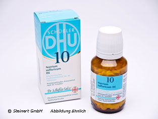 Die Biochemie DHU 10 Natrium sulfuricum D6 Tabletten werden zur Entschlackung und Entgiftung des organismus angewendet. Die Tabletten enthalten den homoeopathischen Wirkstoff Natriumsulfat, welcher im Organismus hauptsaechlich in Gewebefluessigkeiten enthalten ist. Das Natriumsulfat dient als Transportmittel fuer schaedliche und unerwuenschte Substanzen, sowie alten Zellbestandteilen. Beim Natrium handelt es sich um ein Bindungselement fuer Wasser. Die Biochemie DHU 10 Natrium sulfuricum D6 Tabletten mindern Wasseransammlungen im Gewebe und koennen depressive Verstimmungen lindern.