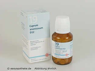 1 Tablette enthält: Cuprum arsenicosum Trit. D12 250 mg.