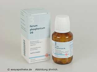 Die Biochemie DHU 3 Ferrum phosphoricum D 6 Tabletten werden zur natürlichen Stärkung des Immunsystems angewendet. Die Tabletten enthalten den homöopathischen Wirkstoff Eisenphosphat. Der Wirkstoff begünstigt den Aufbau von roten Blutkörperchen und unterstützt gleichzeitig die körpereigene Abwehr. Zusätzlich kommt es zu einer Linderung akuter Entzündungserscheinungen und zu einer Regulierung einer vermehrten Schleimbildung. Die Biochemie DHU 3 Ferrum phosphoricum D 6 Tabletten helfen bei Entzündungen im Anfangsstadium, Sonnenbrand und Konzentrationsstörungen.