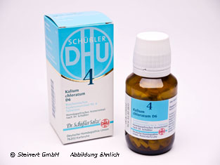 Die Biochemie DHU 4 Kalium chloratum D6 Tabletten werden zur homoeopathischen Behandlung von Entzuendungen imKoerper angewendet. Die Tabletten enthalten den Wirkstoff Kaliumchorid in einer homoeopathischen Verduennung. Der Wirkstoff besitzt faseraufloesende Eigenschaften, wodurch er in der Lage ist Entzuendungen der Schleimhaeute zu lindern, bei denen es zu weisslichen Ablagerungen kommt. Die Biochemie DHU 4 Kalium chloratum D6 Tabletten helfen bei Entzuendungen des Dickdarms, der Blase, des Magens und der Bronchien, sowie bei anderen fieberhaften Erkrankungen.