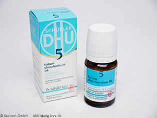 Die Biochemie DHU 5 Kalium Phosphoricum D 6 Tabletten werden zur Behandlung von Störungen der Nerven und Muskeln angewendet. Die Tabletten enthalten den homöopathischen Wirkstoff Kaliumphosphat. Das Kaliumphosphat wirkt auf das vegetative und autonome Nervensystem. In der Muskulatur wird die Aufnahme von Sauerstoff unterstützt. Bei einem Mangel an Kaliumphosphat kann es zu Störungen der Arbeit von Muskeln und Nerven kommen, wodurch es zu einer Muskel- und Nervenschwäche kommt. Die Biochemie DHU 5 Kalium Phosphoricum D6 Tabletten wirken gleichzeitig regulierend auf die Verteilung von Kalium und Phosphat im Körper.