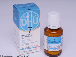 Die Biochemie DHU 7 Magnesium phosphoricum D6 Tabletten werden zur homoeopathischen Behandlung von akuten Schmerzzustaenden angewendet. Die Tabletten enthalten Magnesiumphosphat. Alle Muskeln und Nerven im Koerper benötigen diesen Stoff zur Aufrechterhaltung ihrer Funktionen. Das Produkt eignet sich besonders fuer Menschen, die haeufig muede, abgespannt und erschoepft sind. Die Tabletten koennen um eine schneller Wirkung zu erzielen auch in heissen Wasser aufgeloest und getrunken werden. Die Biochemie DHU 7 Magnesium phosphoricum D 6 Tabletten lindern unter anderem Beschwerden, wie Migraene, Kraempfe, Krampfhusten und Koliken.