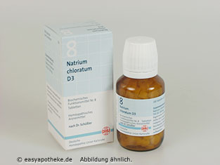 Die Biochemie DHU 8 Natrium chloratum D3 Tabletten werden zur natürlichen Unterstützung der Regelung des Flüssigkeitshaushaltes im Körper angewendet. Die Tabletten enthalten den homöopathischen Wirkstoff Natriumchlorid. Bei einem Mangel an Natriumchlorid kommt es leicht zu einer körperlichen Schwäche und zu Müdigkeit. Zusätzlich kommt es bei einem Mangel zu Ödemen, trockener Haut und Verstopfungen. Durch das Natriumchlorid wird der Nährstofftransport in die Zellen gefördert, wodurch Funktionsstörungen verhindert werden können. Die Biochemie DHU 8 Natrium chloratum D3 Tabletten können außerdem eine sehr gute Wirkung in der Behandlung von Schnupfen zeigen.
