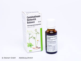 CARMINATIVUM Hetterich Balance Tropfen z.Einnehmen wird traditionell zur Unterstützung der Verdauungsfunktion angewandt. Carminativum Hetterich enthält eine Wirkstoffkombination aus Kamillenblüten, Pfefferminzblätter, Fenchelfrüchte, Kümmelfrüchte und Pomeranzenschalen. Kamille wirkt krampflösend, entzündungshemmend und regt die Wundheilung an, Pfefferminz wirkt entkrampfend und regt die Bildung von Gallenflüssigkeit an, Fenchel und Kümmel wirken blähungstreibend und verdauungsfördernd. Und Pomeranze fördert die Verdauung und regt den Appetit an.
