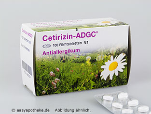 Die Cetirizin ADGC Filmtabletten werden zur Behandlung der Symptome einer Allergie angewendet. Die Tabletten enthalten das Antiallergikum Cetirizin. Die Symptome werden durch das Hormon Histamin ausgeloest. Der Wirkstoff unterbricht die Wirkung des Histamins, wodurch die Beschwerden schnell und langanhaltend unterdrueckt werden. Die Tabletten muessen nur einmal taeglich eingenommen werden. Die Cetirizin ADGC Filmtabletten lindern den Juckreiz bei Neurodermitis, Nesselsucht und Ekzemen und hilft bei Heuschnupfen und allergischen Asthma.