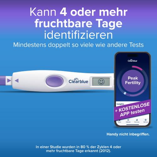 - Eindeutige Ergebnisse – An Ihren fruchtbaren Tagen erscheint der einzigartige lächelnde Clearblue Smiley: Wenn Sie an Tagen mit hoher oder maximaler Fruchtbarkeit Geschlechtsverkehr haben, erhöhen Sie Ihre Chancen, schwanger zu werden, auf ein Maximum
