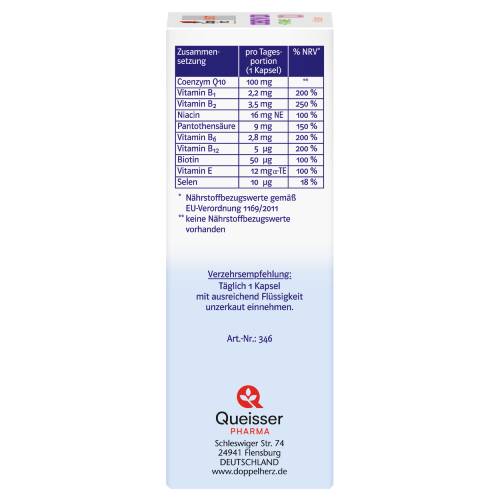 • Zusätzlich sind 100 mg Coenzym Q10 pro Kapsel enthalten