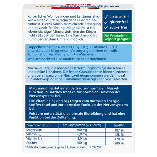 DOPPELHERZ Magnesium+B Vitamine DIRECT Pellets 20 St