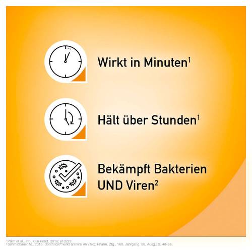 Dorithricin wirkt in Minuten, hält über Stunden und bekämpft Bakterien und Viren.