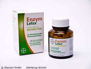 Hinweis für Diabetiker: 1 Kautablette Enzym Lefax® enthält 0,5g verdauliche Kohlenhydrate, entsprechend 0,04 BE.