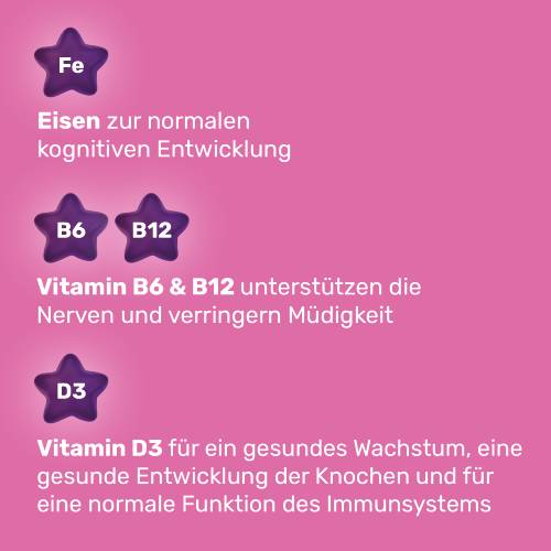 2Vitamin B6 und B12 tragen zu einer normalen psychischen Funktion und einer normalen Funktion des Nervensystems bei. Eisen trägt zu einer normalen kognitiven Funktion bei.