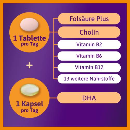 - ZUGESCHNITTENE NÄHRSTOFFKOMBINATION: 400 µg Folat, Tablette enthält Omega 3 DHA, Cholin, Metafolin®, Folsäure, Jod, B-Vitamine, Vitamin D, Vitamin E, Zink, Biotin, Niacin, Pantothensäure und Selen