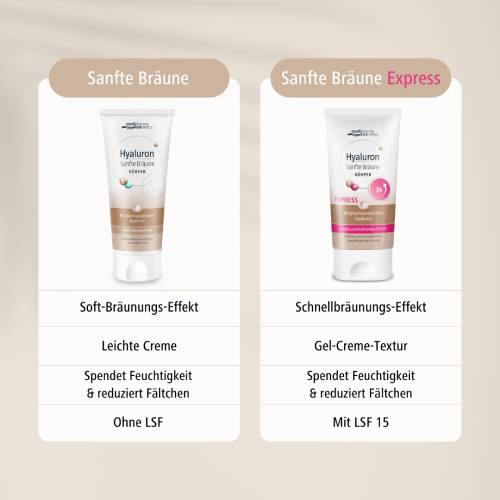 Natürliche Sommerbräune und intensive Feuchtigkeit innerhalb weniger Stunden - mit der Hyaluron Sanfte Bräune Express Körperpflege