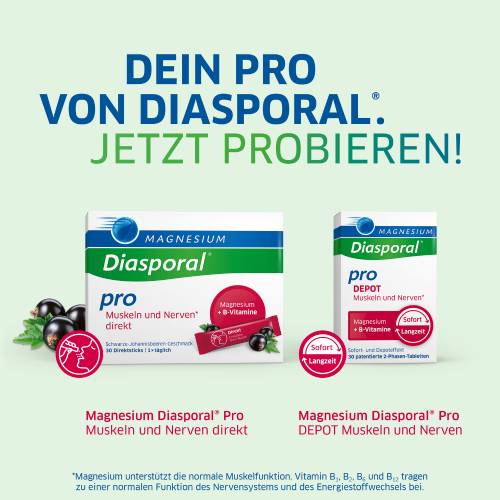 Um den intensiven Herausforderungen des Alltags (z. B. in Beruf, Studium und Familie) gewachsen zu sein, benötigen wir gesunde Muskeln und Nerven. Hierzu leistet Magnesium Diasporal® Pro Muskeln und Nerven einen sinnvollen Beitrag: