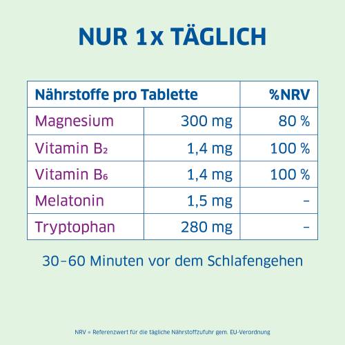 Nahrungsergänzungsmittel mit 300 mg Magnesium, 1,5 mg Melatonin plus L-Tryptophan, Vitamine B2 und B6