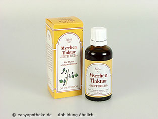 Es werden die betroffenen Stellen des Zahnfleisches oder der Mundschleimheut 2 - 3 mal täglich mit der unverdünnten Myrrhen-Tinktur \\\'Hetterich\\\' eingepinselt. Zur Bereitung einer Spül- und Gurgellösung werdnen 30 bis 60 Tropfen Myrrhen-Tinktur \\\'Hetterich\\\' in ein Glas warmes Wasser gegeben.