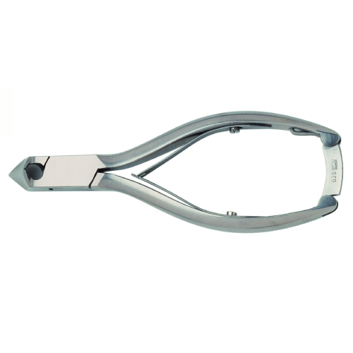 Diese Nagelzange ist etwas Besonderes, das schwere Modell ist durchgesteckt und wird aus gehärtetem Stahl gefertigt. Sie hat eine Spitze, die um 90° gedreht ist und so der natürlichen Form des Nagels nachkommt. Das erleichtert das Schneiden der Fußnägel enorm, wenn man vor dem Fuß sitzt. Sie erreichen optimale Schneidergebnisse und können präzise arbeiten, wie ein Profi!