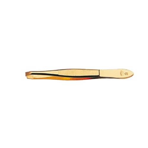 Eine Pinzette ist immer nur so gut, wie ihre Spitze. Die Beschaffung und die Form dieser definieren das Einsatzgebiet. Diese spezielle Augenbrauen-Pinzette kommt mit einer abgewinkelten Spitze und eignet sich durch die Griffigkeit der Spitze besonders für feine Zupfarbeiten und präzises Arbeiten. Sie ist dabei handlich und angenehm in der Handhabung. Dieses Modell ist mit 18 Karat vergoldet.