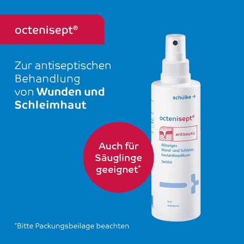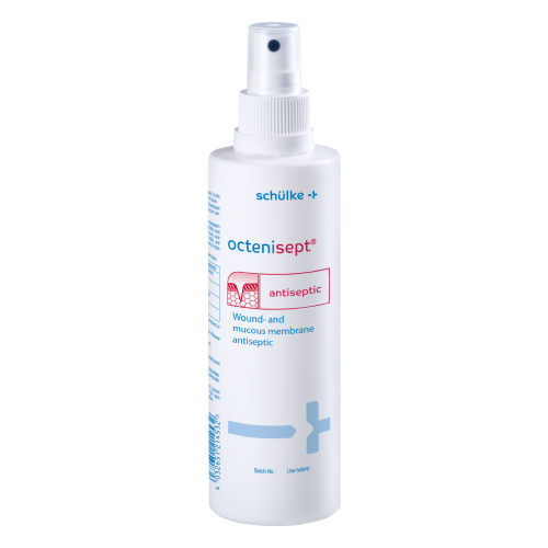 Bei der Octenisept mit Sprühpumpe Lösung handelt es sich um ein modernes, sehr wirksames und gut verträgliches Wunddesinfektionsmittel. Die Octenisept mit Sprühpumpe Lösung umfasst ein breites antiseptisches Wirkungsspektrum, gute Haut- und Schleimhautverträglichkeit und ist bereits für Säuglinge und Frühgeborene geeignet. Neben der Wundbehandlung kennzeichnet die antiseptische Behandlung von Schleimhaut und angrenzender Haut vor operativen Eingriffen und bei der Therapie von Pilzerkrankungen den breiten Anwendungsbereich.