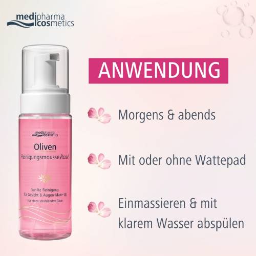 Nach einem langen und oft hektischen Tag ist es keine Seltenheit, dass sich die Haut müde und erschöpft anfühlt. Die äußeren Einflüsse wie Luftverschmutzung, Talg und Make-up-Reste können dazu führen, dass die Haut ölig wirkt und sich belastet anfühlt. Eine gründliche Reinigung am Abend ist deshalb besonders wichtig, um die Haut von diesen Rückständen zu befreien und ihr die Möglichkeit zur Regeneration zu geben. Doch auch am Morgen ist eine Reinigung wichtig, um das Hautbild nach der nächtlichen Talgproduktion zu erfrischen. So startet die Haut frisch und vital in den Tag. An diesem Punkt zieht das Oliven Reinigungsmousse Rosé von medipharma cosmetics in Ihre tägliche Pflegeroutine ein.