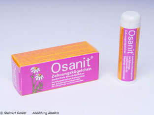 Die Osanit Globuli werden zur homoeopathischen Behandlung von Zahnungsschmerzen bei Saeuglingen und Kleinkindern angewendet. Die Globuli enthalten eine Kombination aus Magnesium, Kamille, Eisen und Calcium. Kamille zum Beispiel beruhigt und lindert die Schmerzen. Zu den typischen Beschwerden bei Zahndurchbruechen gehoeren unter anderem Reizbarkeit, Fieber, Verstopfung, Durchfall, Schlaflosigkeit und Hautausschlaege. Beim Zahndurchbruch befindet sich der Koerper im Wachstumsstress, welcher sehr viel Energie erfordert. Die Osanit Globuli aktivieren die Selbstheilungskraefte und unterstuetzen das kindliche Immunsystem.