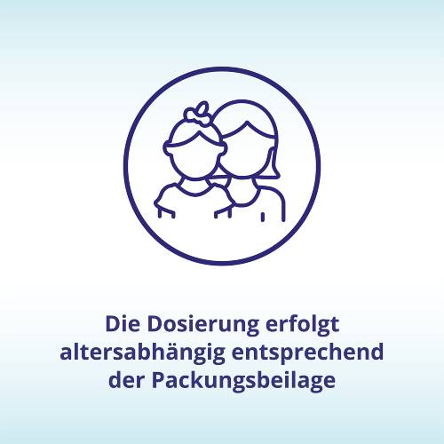 | Kinder mit 19-21 kg Körpergewicht | 6-8 Tropfen | 3-4 mal täglich (18-32 Tropfen) | im Abstand von 6-8 Stunden |