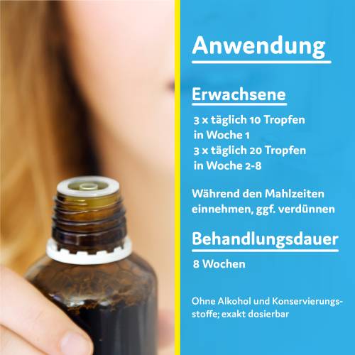 | Erwachsene | 10 Tropfen | 3-mal täglich | während der Mahlzeit |