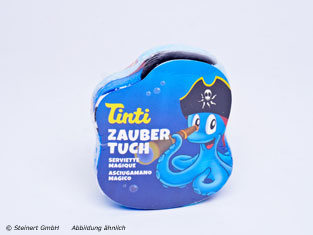 Das Tinti Zaubertuch entfaltet sich im Handumdrehen, wenn die Kinder es zu Wasser lassen. Aus dem vorher noch gepressten Päckchen wird wie durch einen Zaubertrick ein kuschelig weiches Tuch aus Velour.