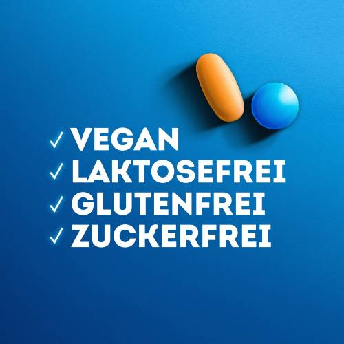 Die Filmtabletten sind vegan, laktosefrei, glutenfrei und zuckerfrei.