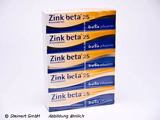 Die Zink Beta 25 Brausetabletten werden zum Ausgleich und zur Prophylaxe eines Zink-Mangels angewendet. Die Brausetabletten enthalten den Wirkstoff Zinkorotat in einer Dosierung von 25 mg pro Brausetablette. Das Zink ist im Körper wichtig für die Funktion von Botenstoffen, so dass es unentbehrlich für viele Wachstums- und Stoffwechselvorgänge ist. Außerdem ist das Spurenelement unter anderem beteiligt an der Immunabwehr des Körpers und an der Wundheilung. Bei einem Zinkmangel kann es zum Beispiel zu Appetitlosigkeit, Wachstumsstörungen von Haaren und Nägeln und einer verzögerten Wundheilung kommen. Die Einnahme der Zink Beta 25 Brausetabletten wird bei Stoffwechselerkrankungen, Diabetes, Lebererkrankungen und Darmerkrankungen empfohlen.